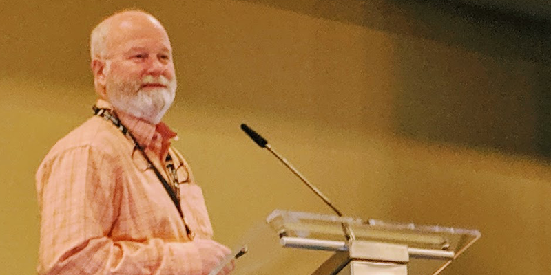 Byron Caughey lecturing at Prion2019 in Edmonton, Alberta.